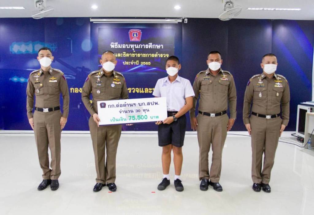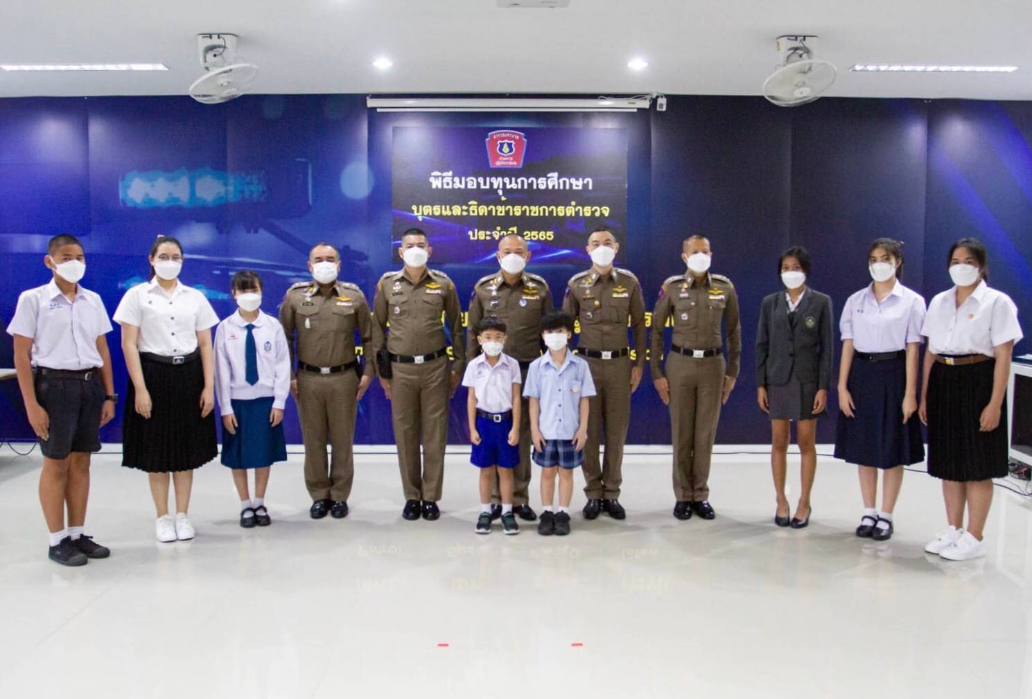 วันที่ 22 ม.ค.65 เวลา 10.00 น. พล.ต.ต.สมบูรณ์ เทียนขาว ผบก.สปพ. เป็นประธานพิธีมอบทุนการศึกษาแก่บุตร-ธิดาข้าราชการตำรวจในสังกัด บก.สปพ. โดยมี รอง ผบก.สปพ. และ ผกก.ในสังกัด พร้อมทั้งผู้แทนผู้ปกครอง-บุตรธิดา มาร่วมพิธีรับมอบทุน รวมจำนวนทั้งสิ้น 200 ทุน เพื่อเป็นสวัสดิการและเสริมสร้าง ขวัญกำลังใจแก่บุตรและธิดาข้าราชการส่งเสริมให้มีขวัญกำลังใจที่ดี ที่จะตั้งใจศึกษาเล่าเรียน ประพฤติ ปฏิบัติตนเป็นแบบอย่างที่ดี สร้างความภาคภูมิใจแก่บิดามารดาและสามารถเป็นที่พึ่งยามที่บิดามารดาเกษียณอายุราชการไปแล้วได้ซึ่งการจัดพิธีในวันนี้ได้ดำเนินการตามมาตรการป้องกันการแพร่ระบาดของเชื้อไวรัสโคโรโน่า 2019 อย่างเคร่งครัด