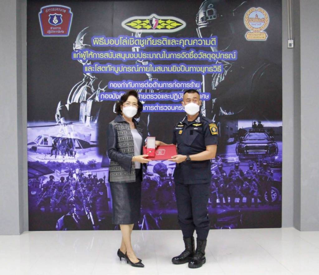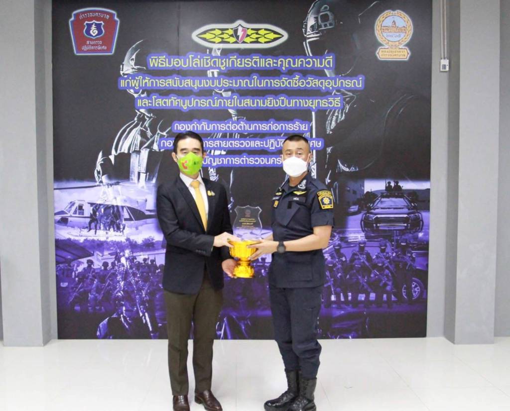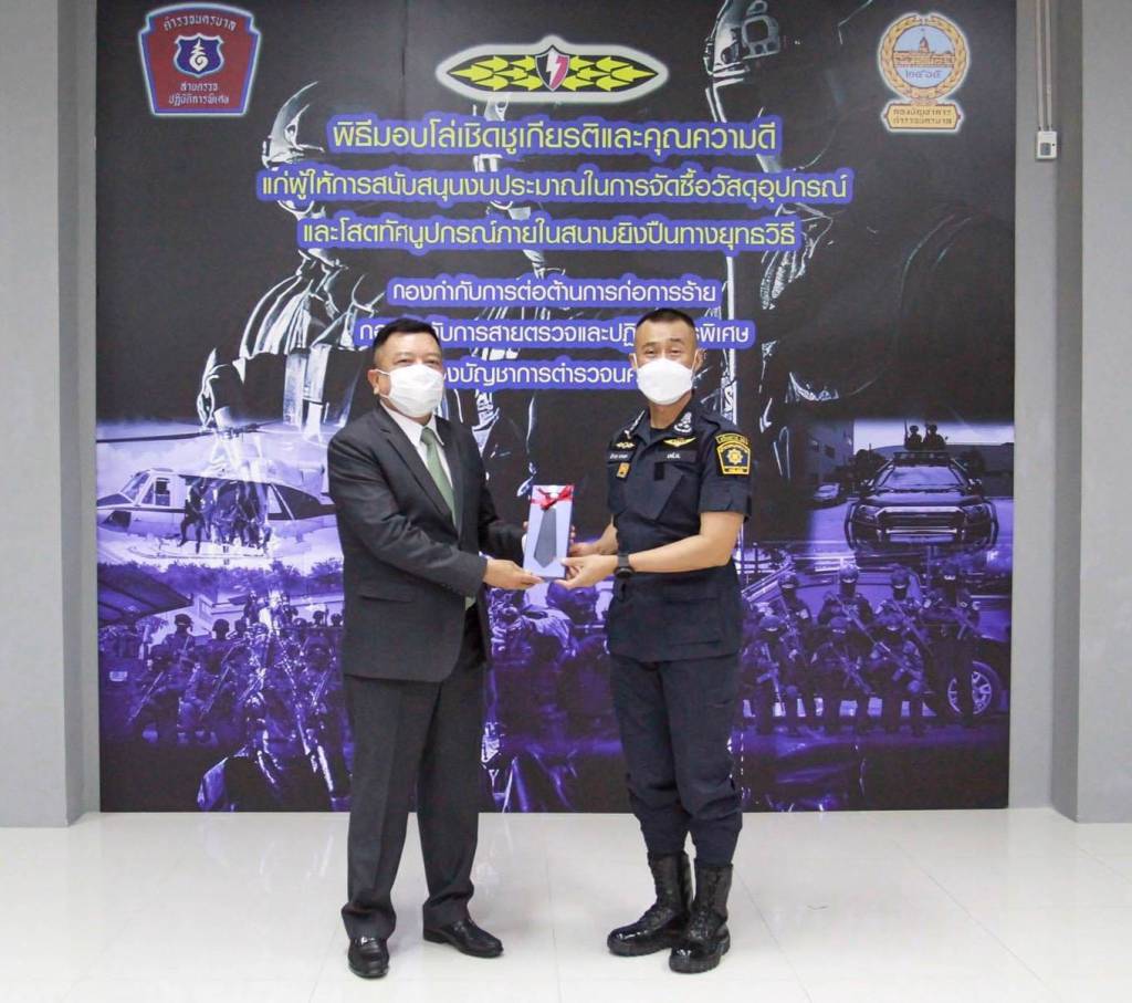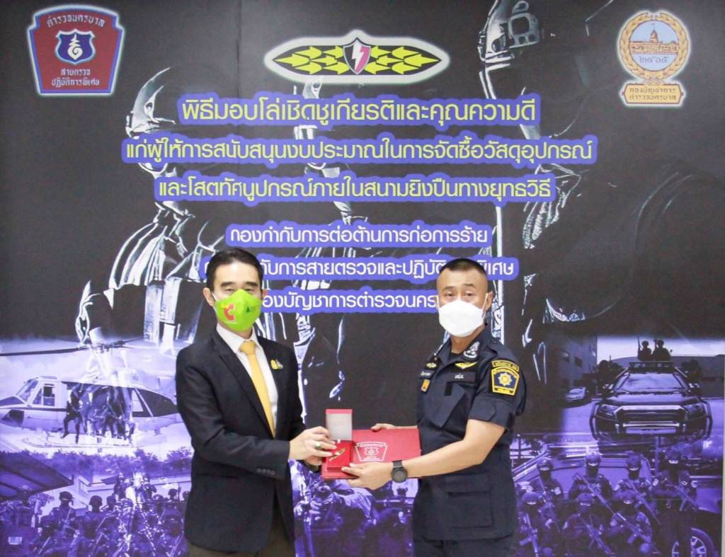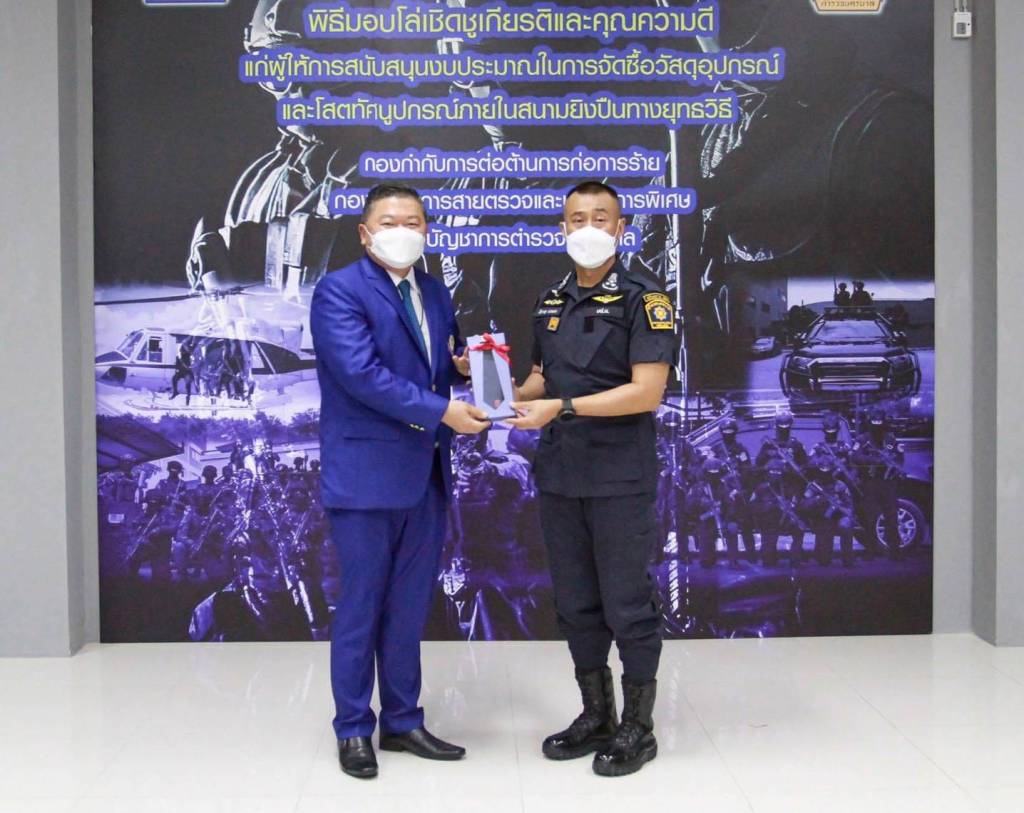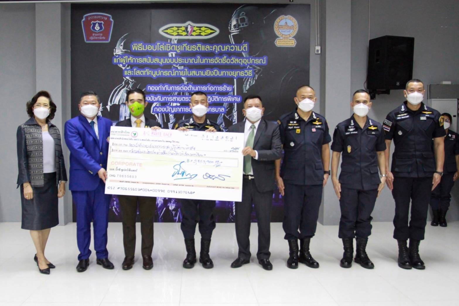 วันที่ 21 ม.ค. 65 เวลา 16.00 น. พล.ต.ท.สำราญ นวลมา ผบช.น. พล.ต.ต.จิรสันต์ แก้วแสงเอก พล.ต.ต.นิธิธร จินตกานนท์ รอง ผบช.น. และ พล.ต.ต.สมบูรณ์ เทียนขาว ผบก.สปพ. ร่วมพิธีรับเช็คเงินบริจาค จำนวน 3,853,900 บาท และมอบโล่เชิดชูเกียรติ ให้แก่คุณอัศวิน เตชะเจริญวิกุล ประธานเจ้าหน้าที่บริหารและกรรมการผู้จัดการใหญ่ บริษัท บิ๊กซี ซูเปอร์เซ็นเตอร์ จำกัด (มหาชน) ในโอกาสที่ได้สนับสนุนงบประมาณเพื่อนำไปใช้ในการจัดหาวัสดุอุปกรณ์ที่จำเป็นและโสตทัศนูปกรณ์ ภายในสนามยิงปืนทางยุทธวิธี กก.ต่อต้านการก่อการร้าย บก.สปพ.